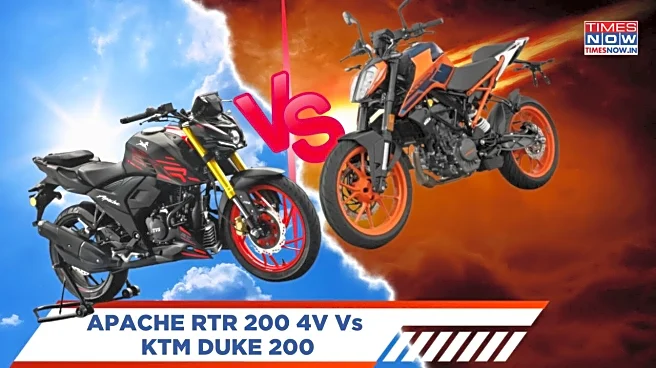 The TVS Apache RTR 200 4V starts at Rs 1.41 lakh (ex-showroom), while the KTM Duke 200 is priced at Rs 1.91 lakh (ex-showroom). So the Apache is a more pocket-friendly option and almost Rs 50,000 cheaper.