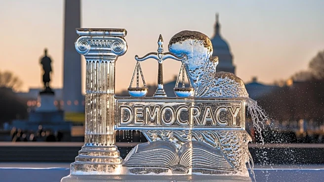 A 3,000-pound ice sculpture spelling 'Democracy' was installed on the National Mall in Washington, D.C., as a symbolic representation of the erosion of democratic rights in the United States. The artwork,