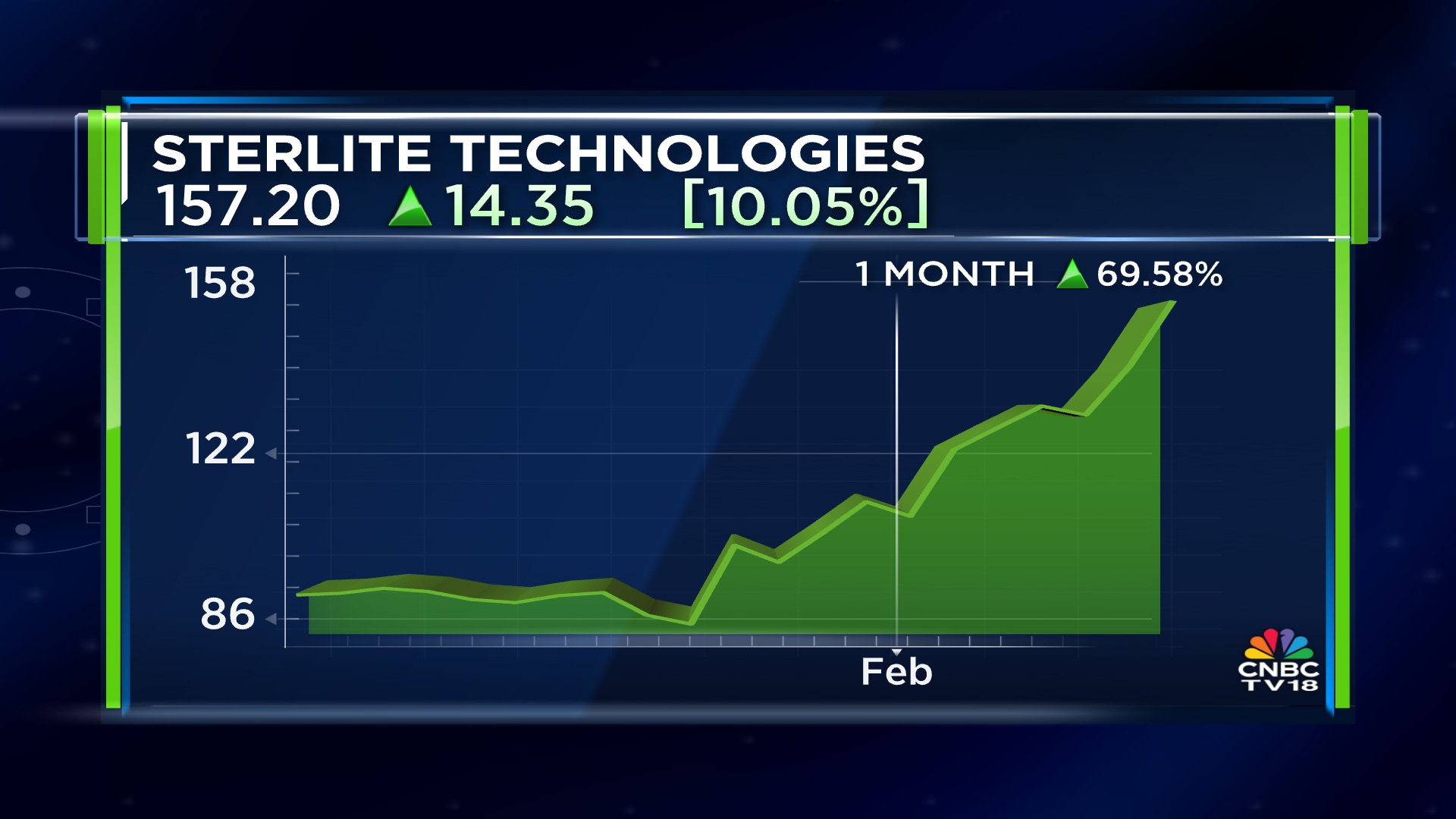 Shares of Sterlite Technologies Ltd. extended their gains for the second consecutive day on Tuesday, February 10, gaining over 14% to hit a fresh 52-week high of ₹163.4 apiece.