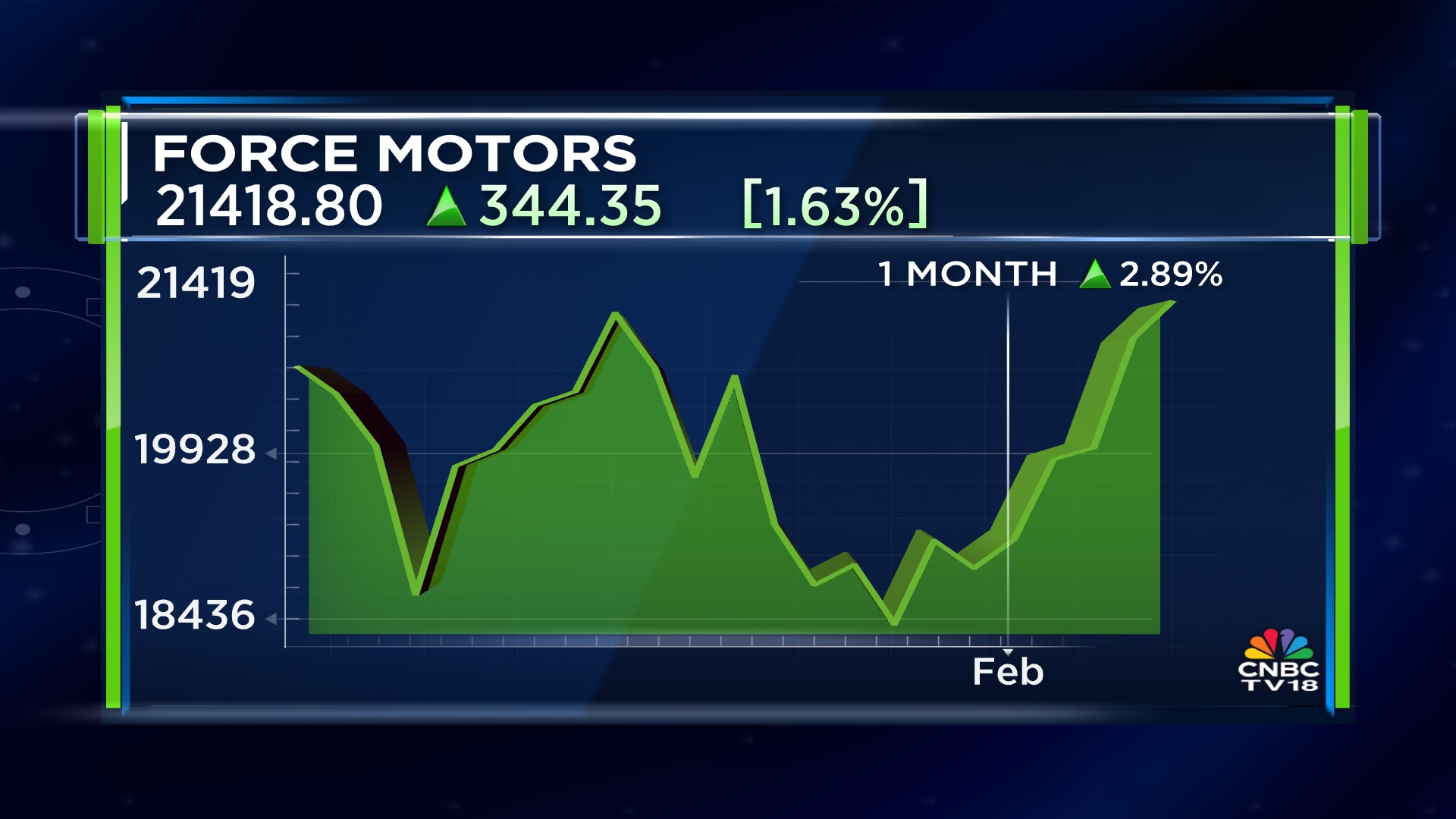 Shares of Force Motors Ltd ended at ₹21,418.85, up by ₹344.35, or 1.63%, on the BSE.