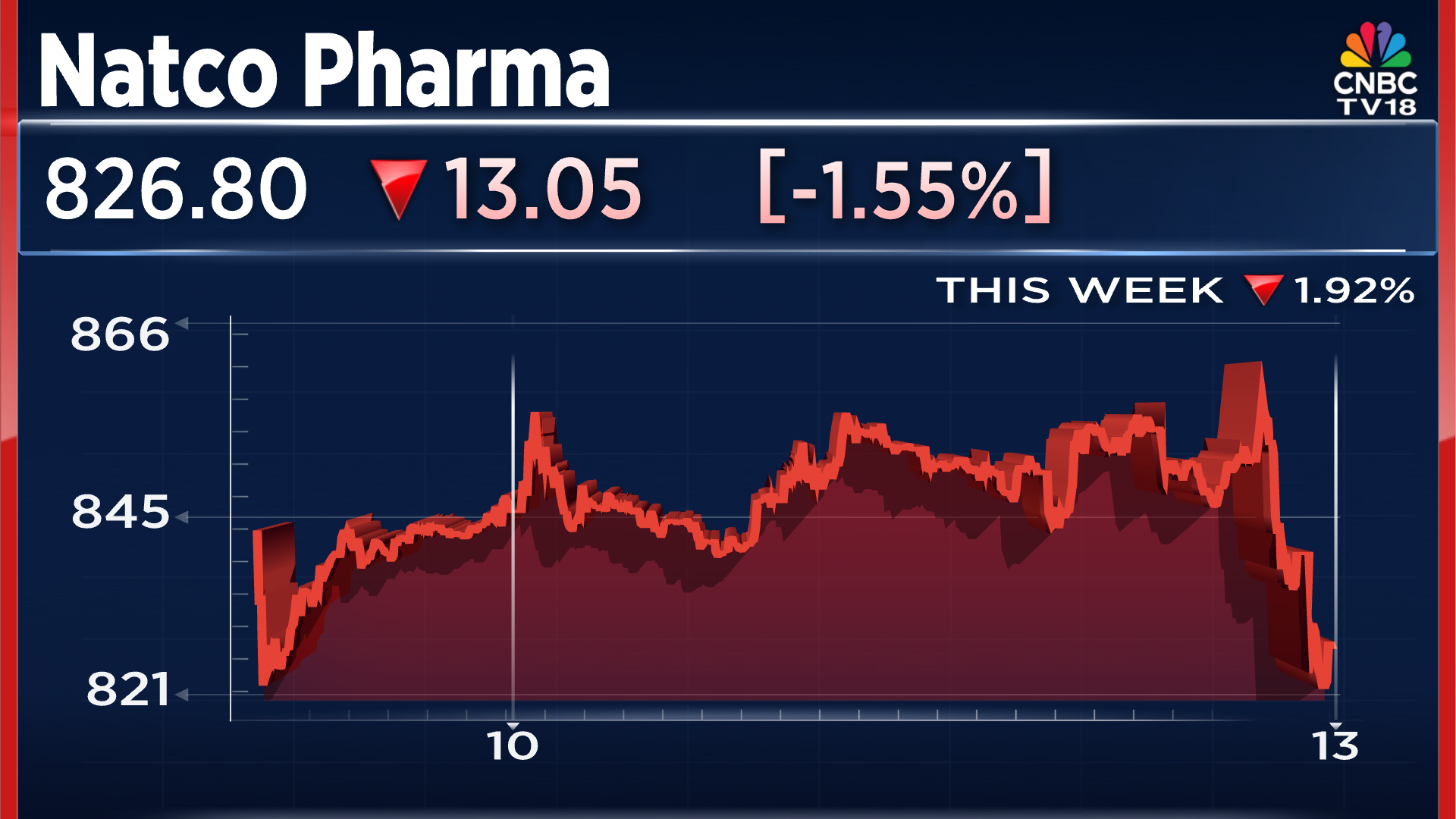Shares of Natco Pharma declined over over 2% in early trade. The stock was down 1.6% at ₹826.25 apiece. It has declined over 15% in the past year.