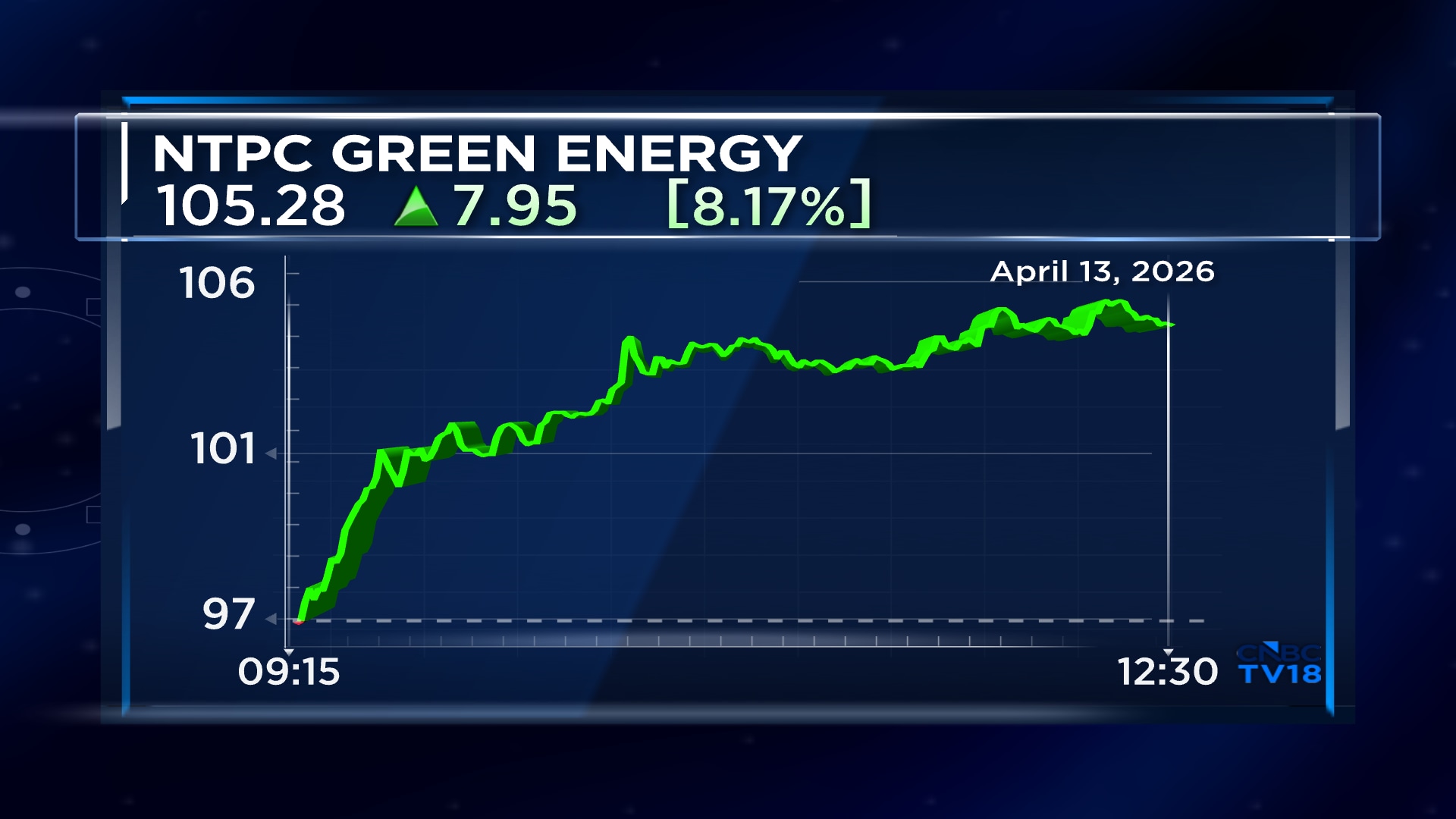 Shares of NTPC Green Energy Ltd. extended their gains for the second consecutive session on Monday, April 13, surging over 9%.