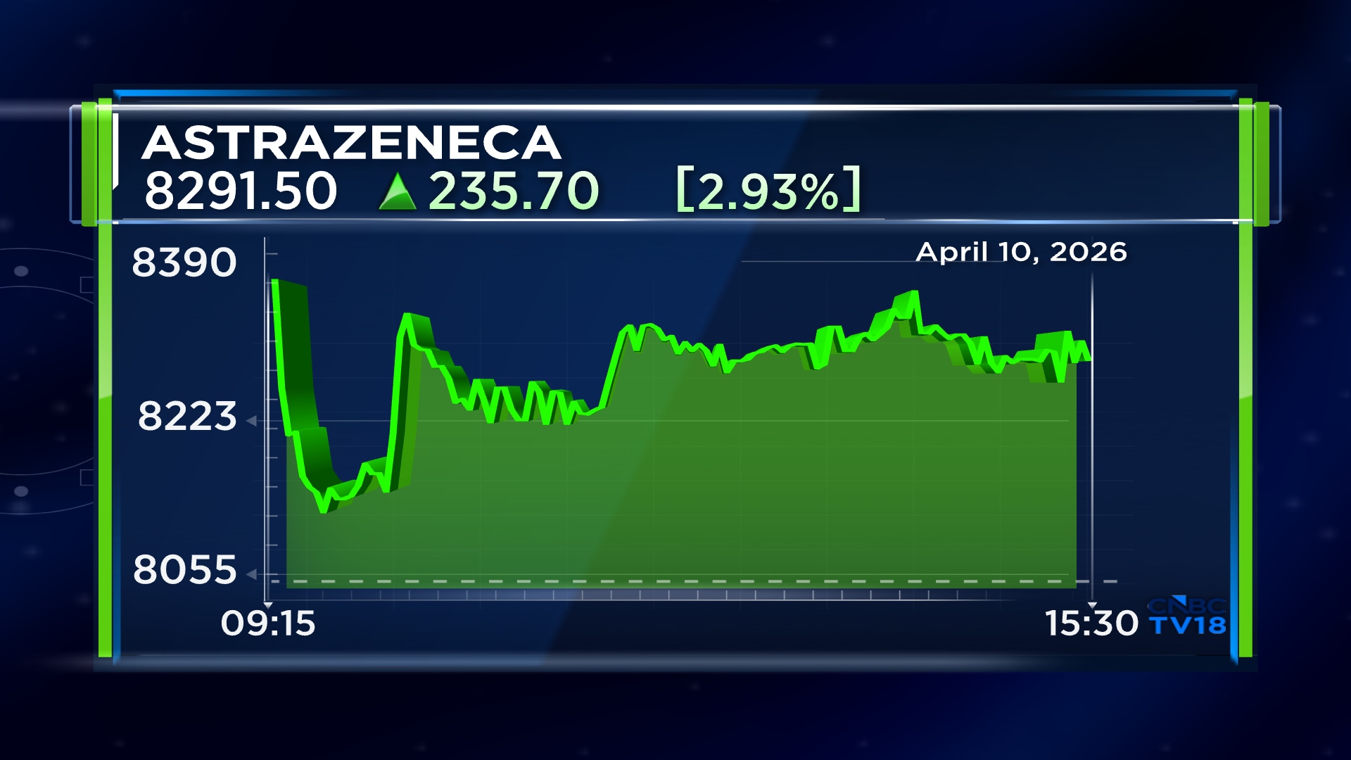 Shares of Astrazeneca Pharma India Ltd ended at ₹8,291.50, up by ₹235.70, or 2.93%, on the BSE today. April 10.