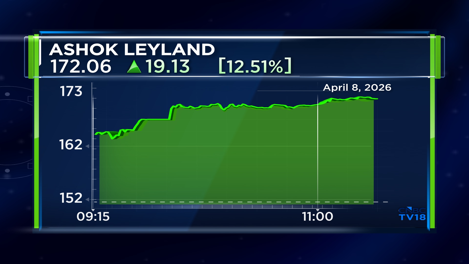 Ashok Leyland shares are now 25% away from its 52-week high of ₹215.42 apiece. The stock surged 12.7% to hit an intraday high of ₹172.4 apiece on Wednesday. The stock was up 12.6% at ₹172.3 apiece at 11.25 AM.