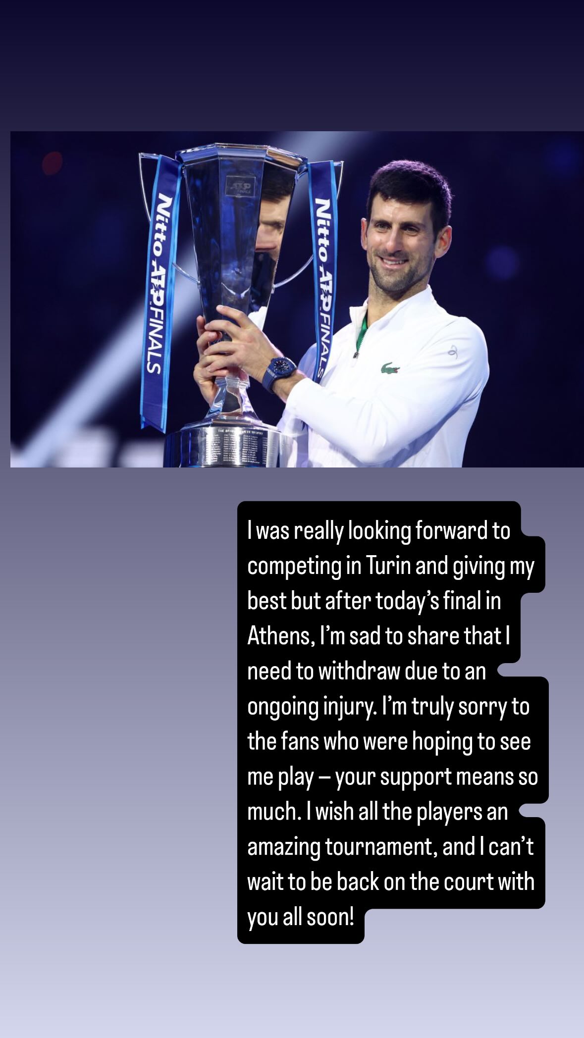Novak Djokovic Pulls Out Of ATP Finals: 'Sad To Share That I Need To Withdraw Due To...'