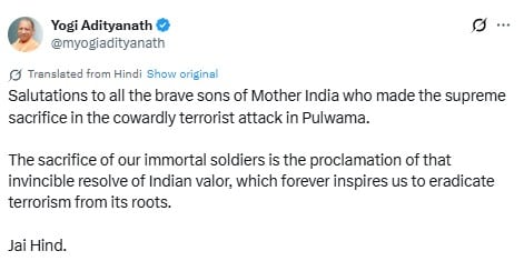 Meanwhile, Uttar Pradesh Chief Minister Yogi Adityanath saluted the “brave sons of Mother India” and reiterated the resolve to eradicate terrorism.