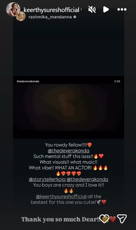 attention, and praises were pouring in. Rashmika Mandanna also praised the team and extended wishes to Keerthy.