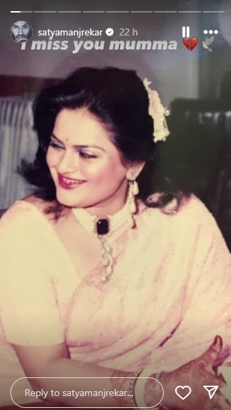 Satya shared a picture of his mom, Deepa, on his Instagram story and shared an emotional note that reads, “I miss you Mumma ❤️🕊️.”