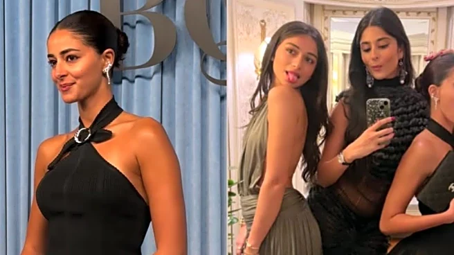 For her red carpet debut at the gala, Ananya chose a Chanel Resort 2026 look, a study in pared-back Parisian glamour. The all-black ensemble featured a halter-neck peplum blouse paired with flared trousers, balancing structure with movement. The sleeveless top, detailed with a silver brooch at the neckline and a dramatic backless cut, flowed into a delicate frilled peplum hem that framed her silhouette beautifully.