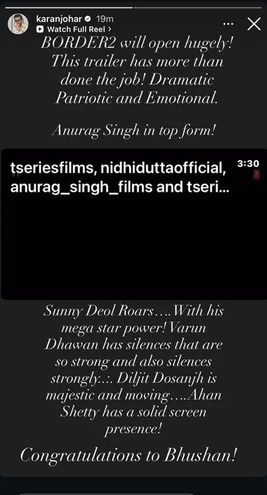 The buzz around Border 2 is only getting louder, and the latest voice to join the chorus is Karan Johar. The filmmaker has given a big thumbs-up to the newly released trailer, calling it a solid mix of