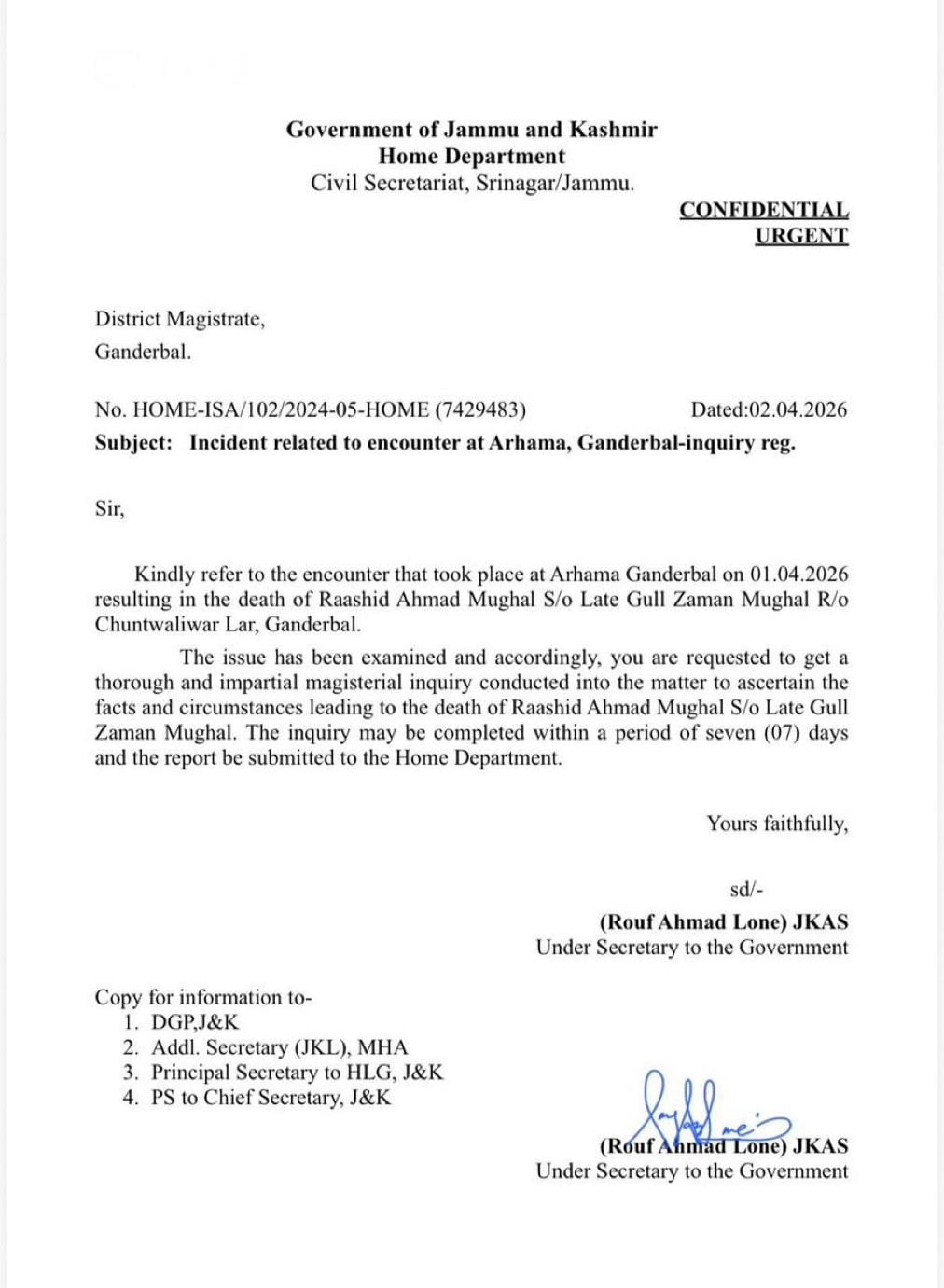 I have ordered a thorough and impartial magisterial inquiry into Arhama, Ganderbal incident. The inquiry will examine all aspects related