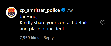 After the video gained attention, the official Instagram account of Amritsar Police asked the couple to provide additional details so that proper action could be considered.