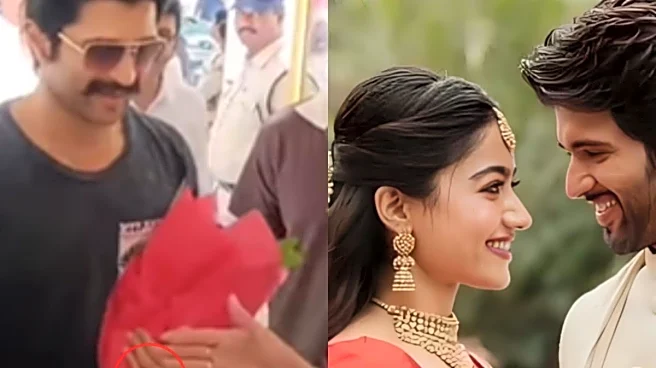 Dressed in a casual yet stunning traditional outfit, Vijay Deverakonda received a warm welcome with a bouquet of flowers, and while posing, he was seen wearing an elegant band on his finger, making fans believe that it is his engagement ring.