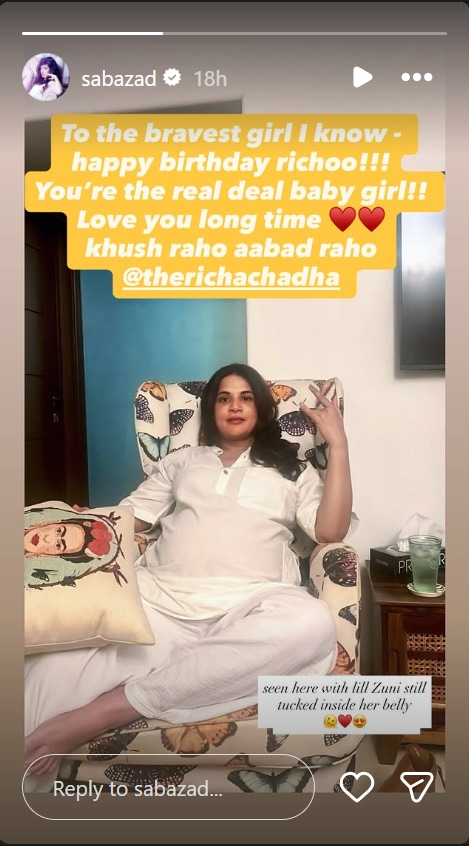 Taking to Instagram, the actor and musician, who is in a relationship with Hrithik Roshan, shared a heartfelt birthday wish for Chadha, offering fans a glimpse into her joyful phase of life. Posted on Instagram stories, she celebrates Richa Chadha’s birthday with an affectionate message.