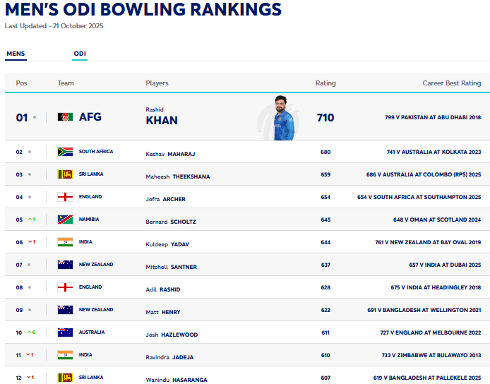 Australia’s Josh Hazlewood has also dropped one place (5th to 6th) in the Test rankings, but in the ODI bowler’s rankings, he jumped six places to take the No. 10 position.