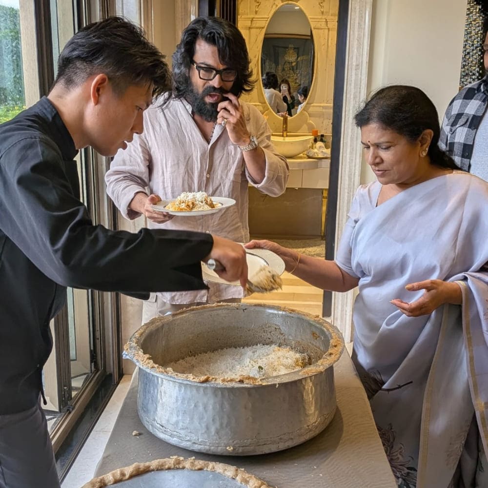 One of the evening’s most touching moments featured a pregnant Upasana standing alongside Ram Charan and his mother, Surekha, as they waited for the biryani to be unveiled. When Osawa lifted the lid, releasing the fragrant rice, Ram Charan’s delight was evident. The night ended with a heartfelt hug from the actor, which Osawa later described as “a day I won’t forget.”