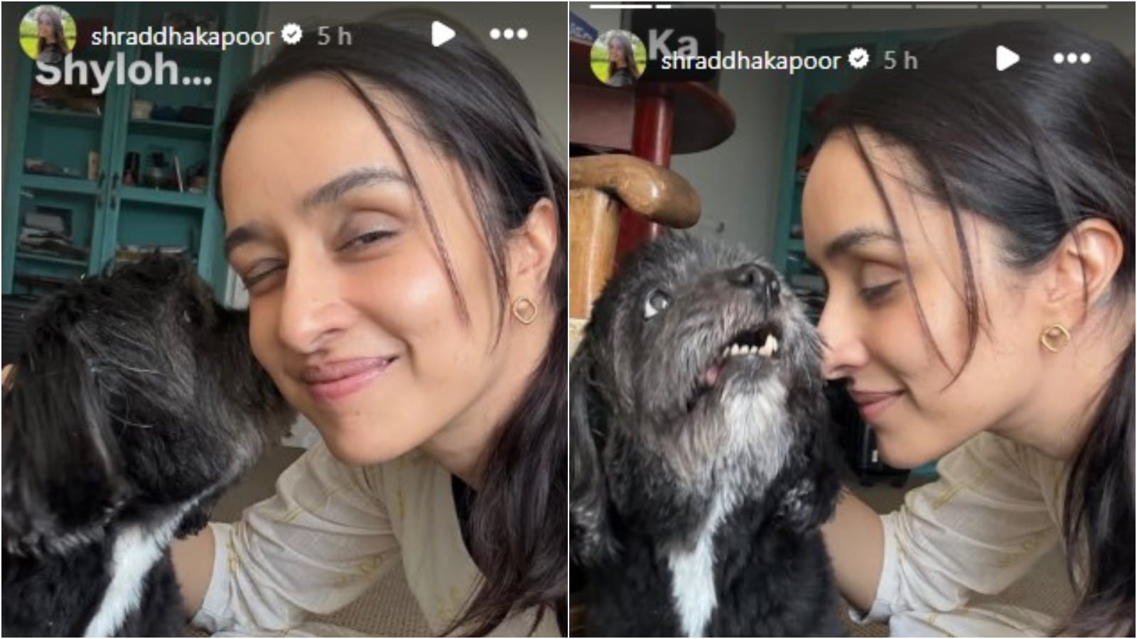 Another picture captures Shraddha sharing an endearing moment with Shyloh, as the dog affectionately licks her cheek while she smiles.