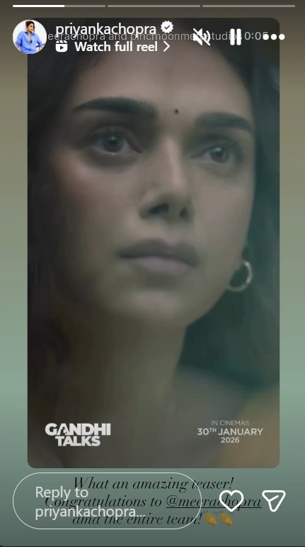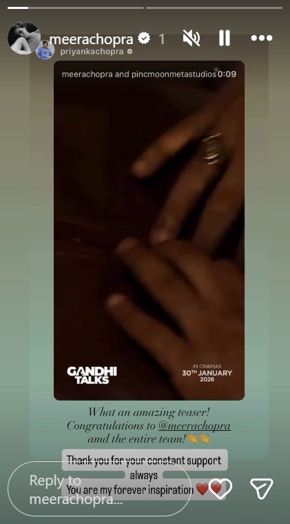 Priyanka Chopra shared the teaser of Gandhi Talks on her Instagram Stories and wrote, “What an amazing teaser, Congratulations Meerra Chopraa and the entire team.” Kishor P Belekar wrote and directed the film, and Academy Award-winning music director AR Rahman composed the music. It is the first silent film to be exhibited at India’s International Film