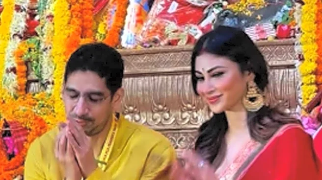 Mouni stole the limelight in a stunning red saree and a complete traditional look for Durga Puja. Ayan was wearing a simple yellow kurta for the day. Later, in the clip, Mouni was seen posing for a few solos as well. Fans also noticed that she was carrying a lotus in her hand which is an essential part of Ashtami puja.
