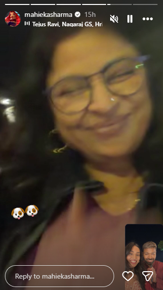 Adding to the warmth of the celebrations, Mahieka Sharma shared screenshots from a video call with Hardik’s mother, Nalini Pandya. Taking to her Instagram Stories, Mahieka posted two separate images from the call, captioning one of them, “Long distance darshan with @nalinipandya.”
