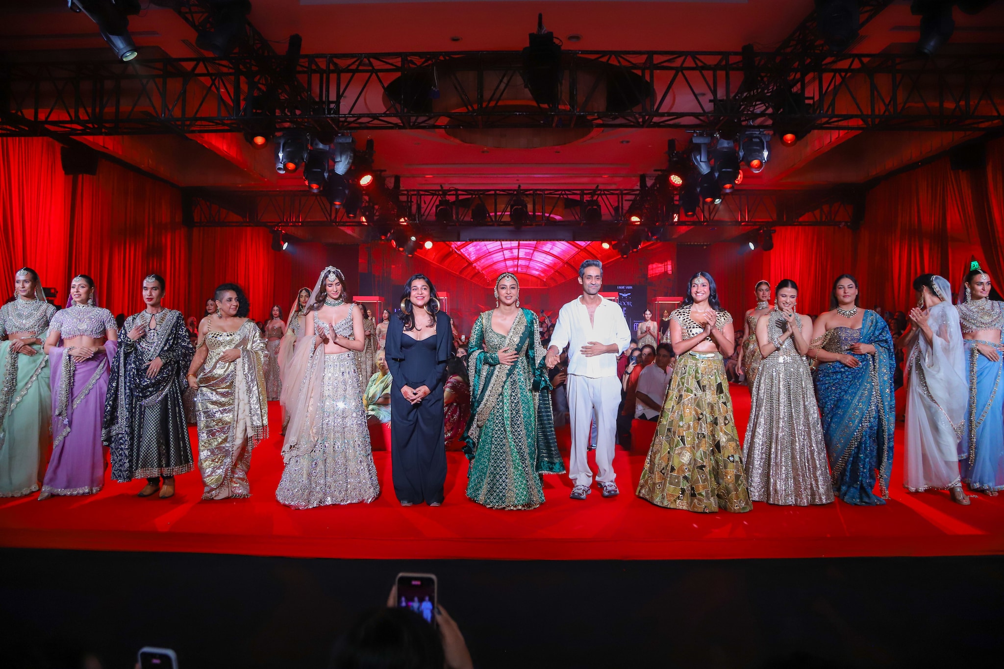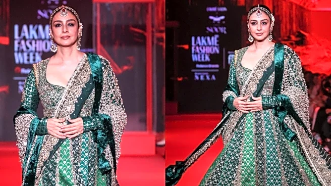celebration of Indian bridal artistry. At the heart of the show stood Tabu, whose poise and quiet magnetism transformed the runway into a stage of heritage and modernity.