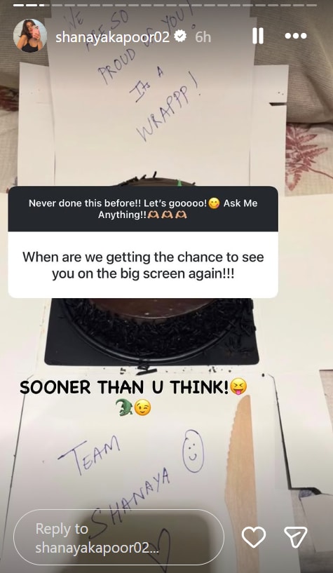 When asked about when audiences would get to see her on the big screen, Shanaya dropped a hint and wrote, “Sooner than you think.”