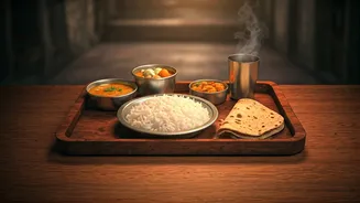 The staple vegetarian meal served on Indian Railways during the 1990s was a straightforward yet satisfying thali. This typically featured a generous portion of rice or a few chapatis, accompanied by a simple preparation of yellow dal and a seasonal vegetable dish, such as aloo gobi or beans. A small dollop of pickle completed the meal, providing a tangy contrast. These dishes were deliberately chosen for their robustness and ability to withstand the conditions of onboard reheating in moving pantry cars. For longer train journeys, rice-based options like vegetable pulao or comforting khichdi were frequently offered, prized for their ease of preparation, filling nature, and ability to provide warmth and sustenance. These meals, served in durable steel trays or melamine plates, were designed for practicality and longevity, ensuring they could handle the rigors of train travel.