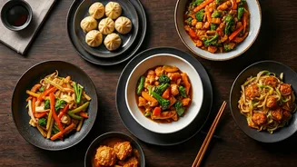 • Essential sauces like soy, chili oil, and vinegar enhance dishes.