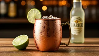• Classic recipe: vodka, ginger beer, lime in copper mug.