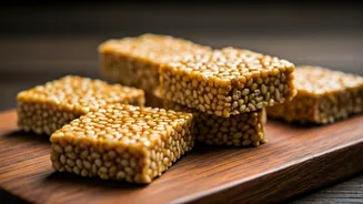 until they achieve a beautiful golden hue. Once they've reached this stage, remove them from the heat and set them aside. The dry roasting process enhances the sesame seeds' flavor, bringing out a nutty taste that is essential for the gajak. This step is fundamental, as it significantly impacts the overall taste and texture of the final product. So, ensure you monitor the seeds closely during the roasting to prevent burning.