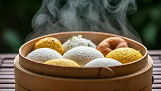 Bati is a quintessential dish from Rajasthan, traditionally made from whole wheat flour, formed into round balls, and baked or steamed. These balls are often served with dal (lentil stew) and churma (sweet crumbly mixture). While baking is more common, steaming bati is also a viable option to offer a less heavy version. The texture of steamed bati is soft and easy to digest, making it a suitable breakfast choice. The dish provides complex carbohydrates from the wheat, ensuring sustained energy levels throughout the morning. This dish embodies the rich culinary heritage of Rajasthan, offering a filling, satisfying, and culturally significant breakfast option. The combination of bati with dal and churma creates a balanced meal, with varied textures and tastes, making it a wholesome breakfast.