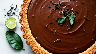 The foundation of this delightful tart is a press-in crust enhanced with the warm, slightly sweet notes of toasted coconut, providing a satisfying textural contrast. This is seamlessly bound together with rich dark chocolate, creating a sturdy yet flavorful base. The filling, a luxurious Earl Grey chocolate crémeux, is where the magic truly happens. This creamy concoction elevates simple ganache by incorporating a velvety custard base, infusing it with the aromatic essence of Earl Grey tea. The bergamot and black tea notes of the Earl Grey are expertly extracted through a rapid infusion process, ensuring their delicate fragrance is not lost amidst the bolder chocolate. This method involves steeping the tea directly in boiling water, a far more efficient technique than traditional dairy steeping, yielding a concentrated flavor base. The combination of milk and dark chocolate in the filling further deepens the complexity, offering layers of familiar comfort and intriguing aroma. The final decorative touch of finely grated dark chocolate adds a final flourish of elegance that is remarkably simple to achieve, contributing to the tart's overall sophisticated presentation.