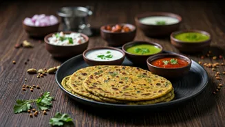 Chutneys are another cornerstone of Rajasthani cuisine, and they pair wonderfully with Besan Methi Paratha. A simple green chutney, made from fresh coriander, mint, green chilies, and a squeeze of lemon juice, adds a vibrant and zesty kick. Tamarind chutney, with its sweet, sour, and tangy notes, provides a contrasting flavor profile that is truly irresistible. Garlic chutney, though strong, can be a great option for those who enjoy a bold taste. Tomato chutney, often cooked with spices, offers a slightly sweet and savory counterpoint to the paratha. The choice of chutney depends on individual preferences; however, the common goal is to provide a complementary flavor that elevates the experience. Keep in mind the spice levels of each chutney and match them according to your tolerance. In addition, these chutneys also boost the nutritional value of the meal, with added antioxidants and vitamins.