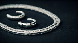 Rings crafted in silver are making a significant impact, offering both contemporary cool and timeless allure. Heavenly London's 'The Silver Constellation Ring', available for approximately ₹17,824, draws inspiration from the celestial, featuring intricate detailing that evokes a sense of wonder. For those seeking a bolder, more avant-garde design, the 'Nimbus Ring' by Spinelli Kilcollin, priced at a considerable ₹2,66,607, presents a unique, multi-banded structure that signifies a luxurious and fashion-forward statement. Maanesten's 'Siren Ring', at ₹11,175, offers a more accessible yet equally captivating option, with a design that hints at fluidity and elegance. These rings showcase silver's capacity to be both a delicate accent and a commanding centerpiece, highlighting its multifaceted appeal in contemporary jewellery design.