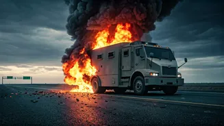 targeted a cash-in-transit vehicle near Tuturano, employing a meticulously planned ambush. Investigators believe at least six individuals participated in this sophisticated operation. They strategically blocked both lanes of the SS613 highway, which connects Brindisi and Lecce, by positioning stolen vehicles and setting them ablaze. This created a formidable 'wall of flames,' effectively cutting off access and preventing any immediate response from law enforcement. The intense visual of black smoke billowing from the highway and the sounds of explosions ripping through the armored truck were captured in dramatic videos circulating on social media. Motorists found themselves trapped, witnessing the unfolding drama as the situation escalated rapidly, leaving many stranded and unnerved by the violent spectacle.