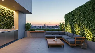 create a lush, vibrant environment even in compact areas. These walls can be designed with various plants, from flowering varieties to herbs and vegetables, allowing for personalization and versatility. The vertical garden not only adds visual interest but also helps purify the air and provide a sense of tranquility. Consider the sunlight exposure, irrigation needs, and the overall design aesthetic of your home when planning a vertical green wall. Whether you choose a minimalist design with a single type of plant or a mixed, colorful arrangement, a vertical garden can transform an ordinary terrace into a striking outdoor haven. Remember, the selection of plants should be adapted to the climatic conditions of your region to ensure their sustainability and ease of maintenance. This also is a great way to improve your home's aesthetic appeal.