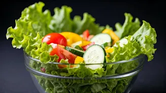• Ingredients include fresh veggies, proteins, dressings for varied flavors and textures.
