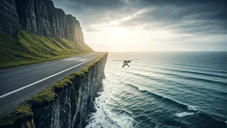 feet). This perilous strip is dramatically perched on a cliff's edge, with the vast ocean on one side and steep drops on the other. Such extreme conditions necessitate the use of only small aircraft, like the BN-2 Islander, and demand absolute precision from pilots during every landing. The tight confines and surrounding natural hazards leave no room for error, making each touchdown a testament to exceptional piloting abilities and meticulous planning.