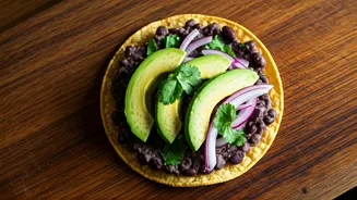 With all components ready, it's time to assemble these delicious breakfast tostadas. Spread a generous portion of the warm black bean mixture evenly over each of the baked, crispy tortillas. Carefully place a cooked egg on top of the beans on each tostada. Spoon about 2 tablespoons of fresh pico de gallo over each egg. Next, sprinkle your tostadas with 1/4 cup (28g) of crumbled Cotija or feta cheese, and a scattering of thinly sliced green onion. Finally, crown each tostada with delicate slices of one medium avocado. Serve immediately for a truly satisfying and vibrant breakfast experience.