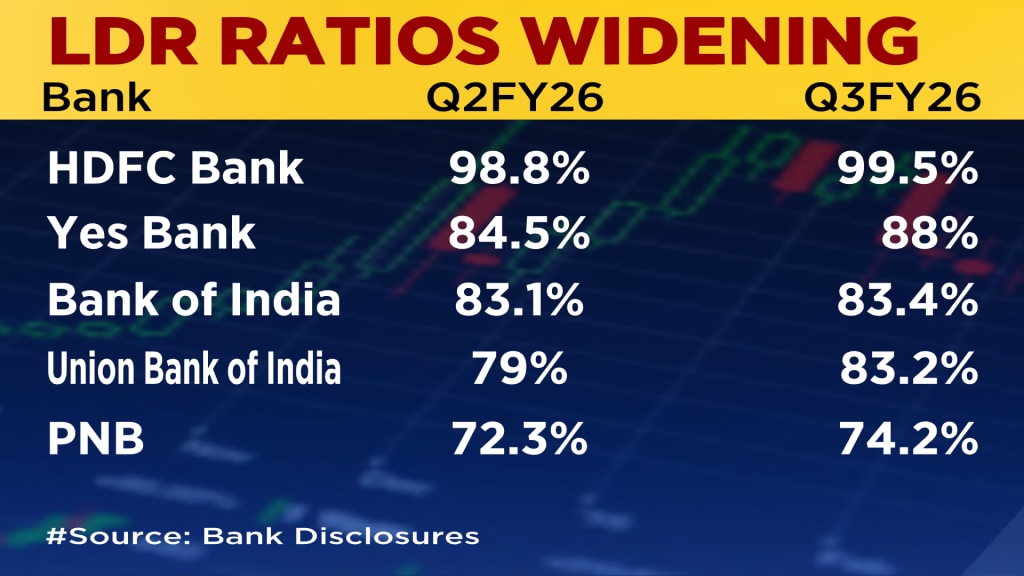 For example, HDFC Bank’s LDR rose to 99.5% in the October-December quarter of 2025 (Q3FY26). Despite reporting relatively strong business momentum, the stock has faced pressure due to investor concerns over such a high LDR. Similar trends have been observed across other private and public sector banks.