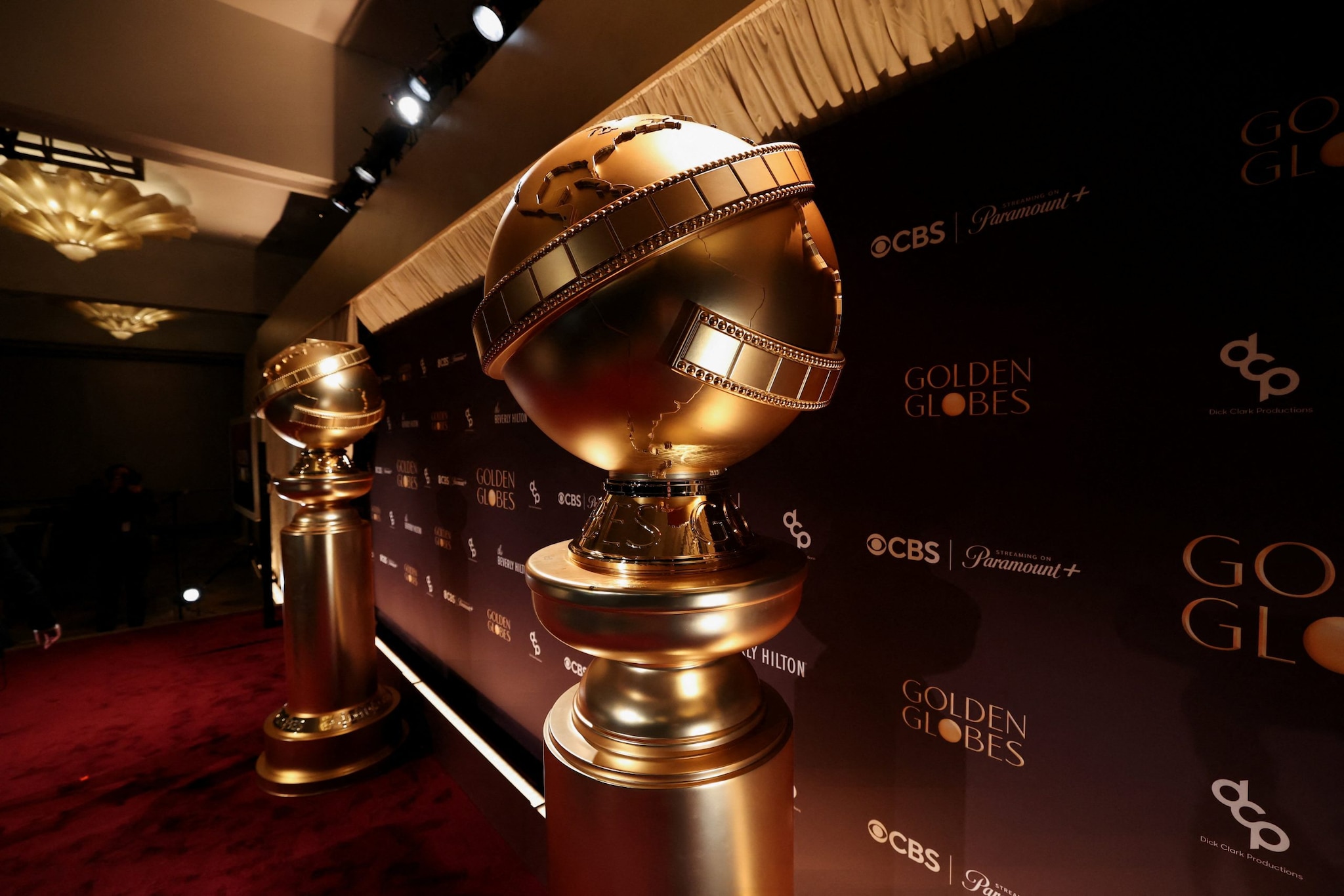 Golden Globe statues are displayed, ahead of the announcement of the nominations for the 83rd Golden Globe Awards in Beverly Hills, California, U.S., December 8, 2025. REUTERS/Mario Anzuoni