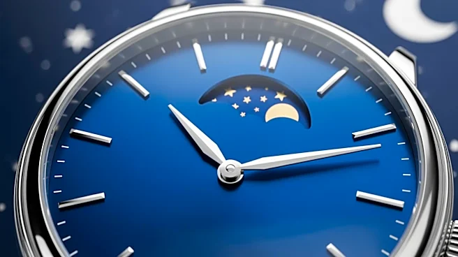 discs, one for the day-night display and another calibrated to track the synodic month with astronomical precision. The watch's dial is crafted from Murano aventurine glass, a material known for its deep blue color and glittering dispersion, first introduced by the brand in 2024. The watch also features a guillochéd gold sun and a mother-of-pearl moon, surrounded by acrylic stars, with a white gold engraving of the lunar surface on the caseback.