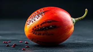 Elevate your everyday salads with the vibrant tang of African tamarillo. Thinly sliced, this fruit introduces a refreshing zest that pairs beautifully