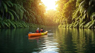 exploration; it cultivates a unique connection between partners as they navigate the water. The river's current, characterized by a blend of calm stretches and gentle challenges, makes it an inviting destination for both experienced kayakers and those new to the sport seeking a dose of aquatic fun. As you paddle, the riverbanks unfurl a tapestry of vibrant green, teeming with an array of bird species and other fascinating wildlife, providing a constant visual delight. The gentle flow of the water allows for a relaxed glide, enabling you to fully immerse yourself in the tranquil splendor of your surroundings without any sense of urgency, making each moment a picturesque experience.