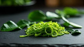Kaffir lime leaves play a pivotal role in enhancing the vibrant character of Thai green curry. Their distinct citrus notes cut through the richness of the creamy coconut milk base, adding a delightful tang. Often finely shredded or added whole to the curry paste, the leaves ensure their flavor is evenly distributed throughout the dish. A typical preparation might include colorful vegetables like tender eggplant and crisp bell peppers, alongside your choice of protein, creating a balanced and wonderfully aromatic curry.