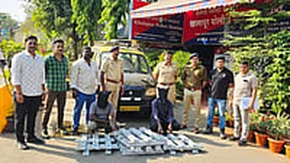 Navi Mumbai: Two men were arrested for stealing aluminium alloy ingots by boarding a moving goods truck on the Mumbai–Pune Express Highway, using a car to tail the vehicle and collect the stolen material