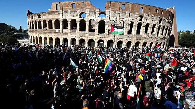 People holding banners and Palestinian flags, chanting "Free Palestine" and other slogans, filed past the Colosseum, taking part in a march that organisers hoped would attract at least 1 million people.