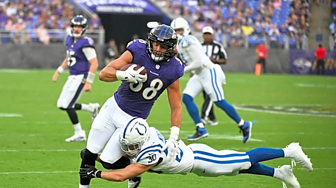 Aug 7, 2025; Baltimore, Maryland, USA; Baltimore Ravens tight end Charlie Kolar (88) is tackled by Indianapolis Colts safety Hunter Wohler (30) during the first quarter at M&T Bank Stadium. Mandatory Credit: Rafael Suanes-Imagn Images | Rafael Suanes-Imagn Images The Indianapolis Colts are still wit
