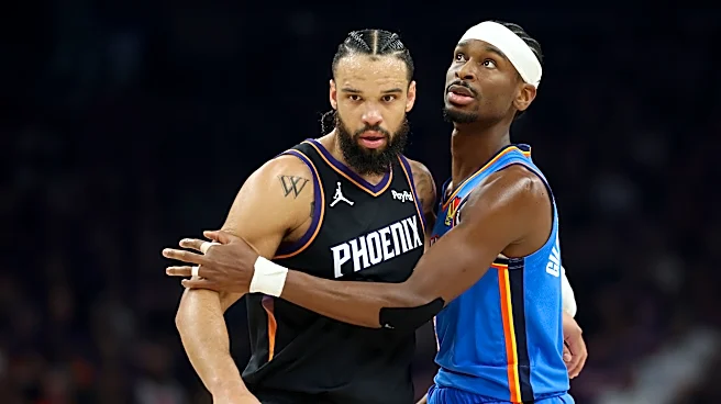 PHOENIX, ARIZONA - APRIL 25: Dillon Brooks #3 of the Phoenix Suns and Shai Gilgeous-Alexander #2 of the Oklahoma City Thunder in action during the first half in Game Three of the Western Conference First Round NBA Playoffs at Mortgage Matchup Center on April 25, 2026 in Phoenix, Arizona. NOTE TO USE