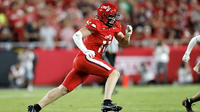 KANSAS CITY, MO - AUGUST 28: Jake Golday #11 of the Cincinnati Bearcats pursues a play on defense during a college football game against the Nebraska Cornhuskers on August 28, 2025 at GEHA Field at Arrowhead Stadium in Kansas City, Missouri. (Photo by Joe Robbins/Icon Sportswire via Getty Images) |
